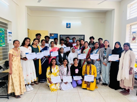 The event began with a soulful prayer song, followed by the lighting of the ceremonial lamp, signifying the light of knowledge and the beginning of a new journey. For Batch 27, it was a proud moment to receive their certificates, marking the successful completion of their course and their readiness to step into new opportunities with confidence and skill. For Batch 28, it was a warm and encouraging welcome into the center, as they begin their own learning journey with hope and enthusiasm.